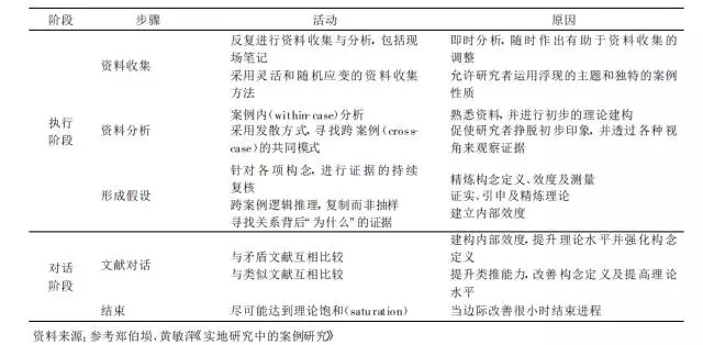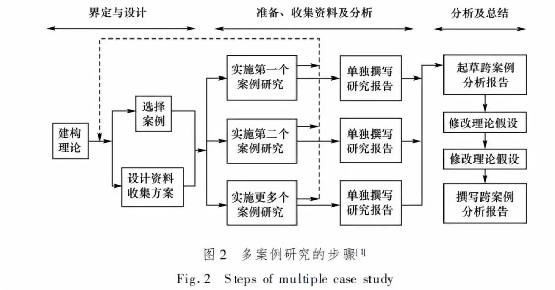 最后需要注意,图示中虚线所形成的反馈环是研究中非常重要的一节:在对某一个案例进行研究时,如果发现其与最初的研究方案不匹配或者案例的实证结果与原来的理论假设有冲突,那么就要在继续进行下一个案例研究之前对原有的研究方案或理论假设进行重新设计或修改。Eisenhardt在其案例研究的一般步骤中也强调研究者可能需要根据跨案例研究反馈回来的信息对研究问题进行重新定义。