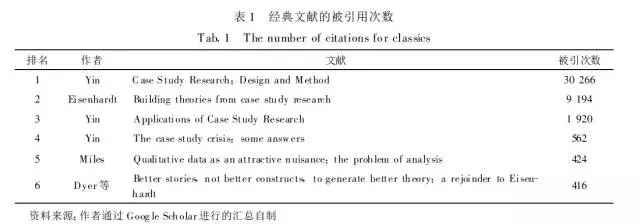 Yin博士的“案例研究两部曲”是案例研究方法的两部奠基之作,作者先后取得了麻省理工学院和哈佛大学的学位,并创办了COSMOS调查公司。其中,《案例研究:设计与方法》自1984年出版以来已经推出四个版本(三个版次加一次修订),重印高达40余次,在案例研究领域有广泛的影响,因此,作者在2003年第三版中的序言中写道,本书的与众不同之一就在于经历了时间的考验,本研究选用的文献是2003年第三版的中译本。另外一部《案例研究方法的应用》是《案例研究:设计与方法》一书的延续,作者称其为前者的姊妹篇,该书首版于1993年,本研究选用的文献是2003年该书推出的第二版的中译本。Yin博士在其“案例研究两部曲”之前就已经对案例研究方法展开了重点研究,一篇经典文献是1981年刊登在《管理学会评论》上的“The casestudy crisis:some answers,该文献是1979年Miles在AMR上发表的“Qualitative dataas an attractive nuisance:the problem of analysis”的对应论文,Yin博士的回答解释了Miles对案例研究的误解。另外一对经典文献是刊登在《管理科学季刊》上的两篇对应论文,第一篇是美国斯坦福大学Eisenhardt教授在1989年发表的“Building theories from case study research”,该文献标志着案例研究一般步骤的形成,Dyer等1991年发表的“Better stories,not better constructs,to generate better Theory:a rejoinder to Eisenhardt”对Eisenhardt的研究做进一步的补充,提出了要想真正发挥案例研究方法的优势还是要回归案例本身品质的观点。表1为GoogleScholar(2009年10月26日)显示的上述文献目前已被引用次数的汇总表。