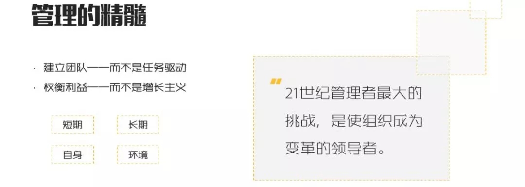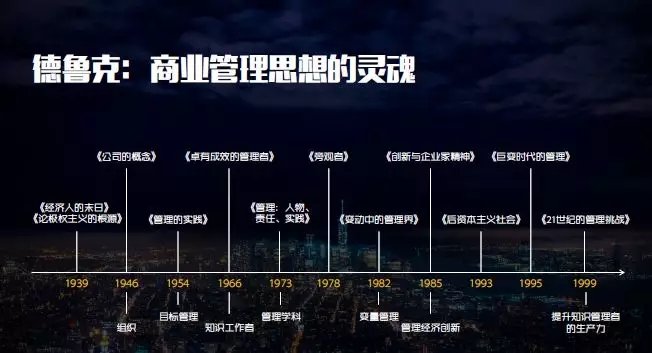 可是我们的大师箴言里面经常说德鲁克给出答案了,比方说目标管理、绩效、领导力、创新等等。