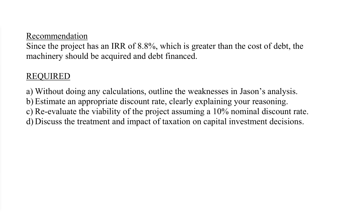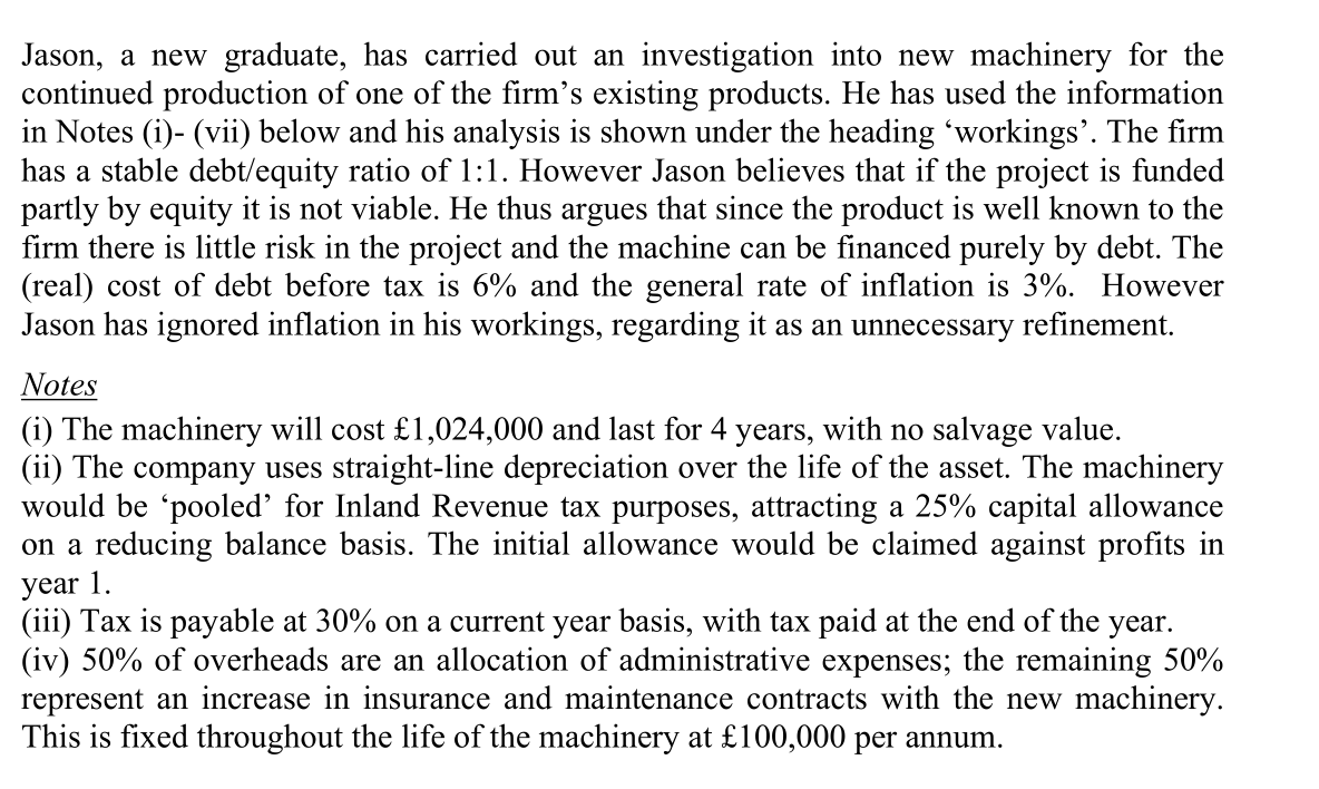 关于答案中有几个问题:1.为什么overhead charge变成了100?2.PV=899是怎么算出来的?3. after tax cost of the investment=-804是是什么?4.NPV95是怎么算出来的 5. a)答案的第5点是啥意思? 6.note里的第二点和第四点如何理解?