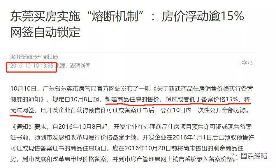 早在2016年10月,东莞就率先出台“房价熔断”机制: