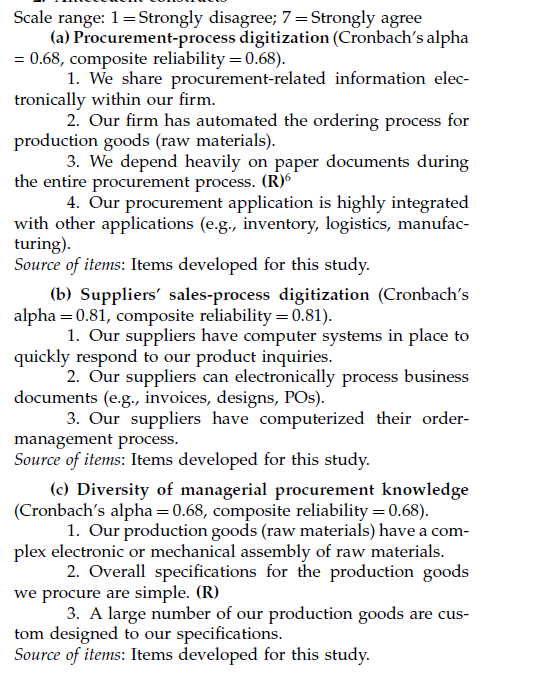 想请问一下在实证研究的数据收集阶段中,问卷的问卷的条目(items)总是与建立的构念(constructs)对应。那么如何由问卷的测试结果得到构念的描述性统计? 类似下图,第一张图是构念的描述性统计,第二张图问卷条目的部分截图,第一张图中构念的均值Mean与标准差S.D.是如何通过问卷结果得到的?