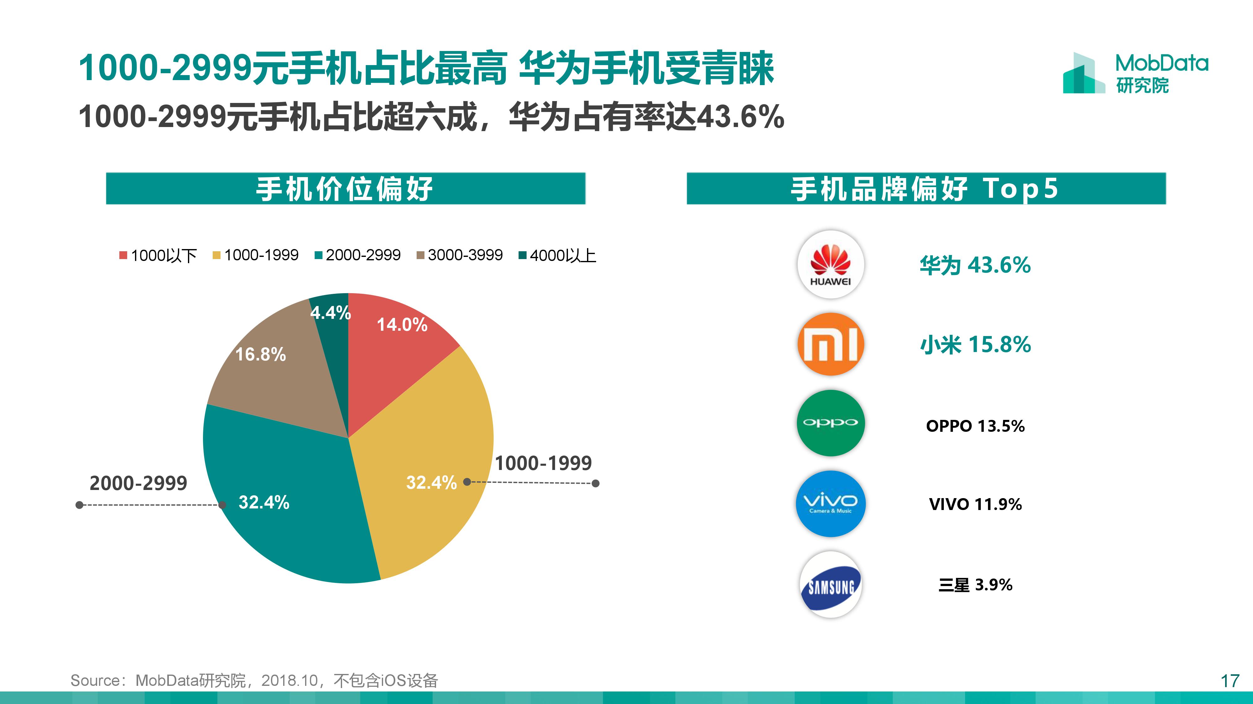 1000-2999元手机占比超六成,华为占有率达43.6%