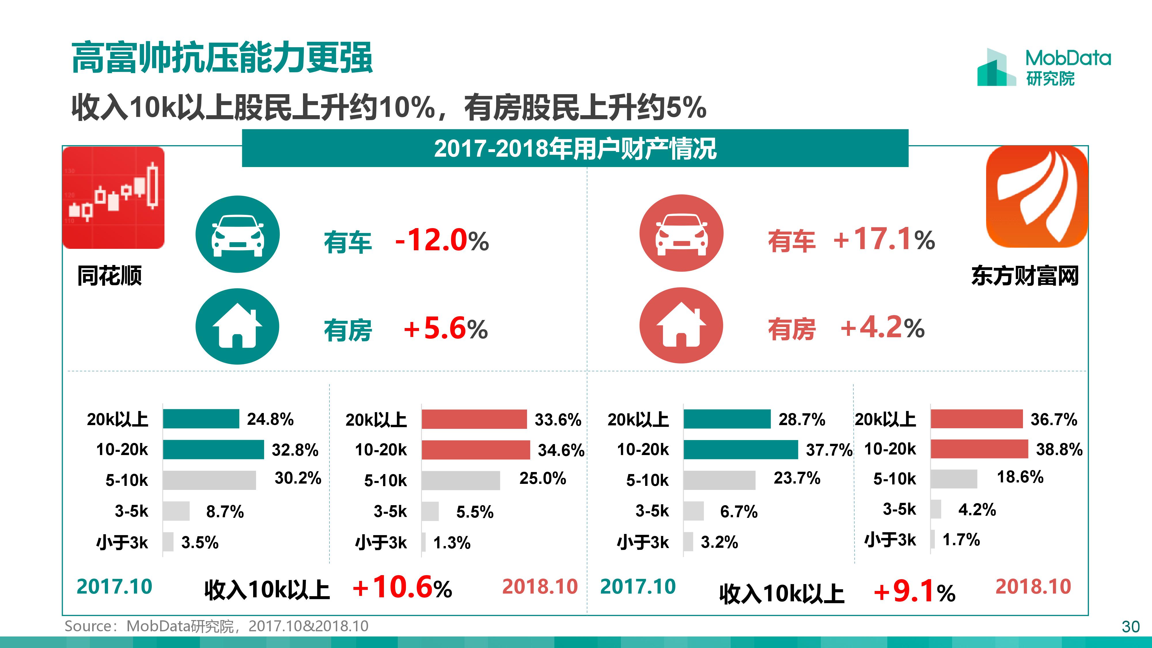 收入10k以上股民上浮约10%,有房股民上升约5%。,股市中小散户的比例逐渐降低,“高富帅”逐渐成为股市的主要玩家。