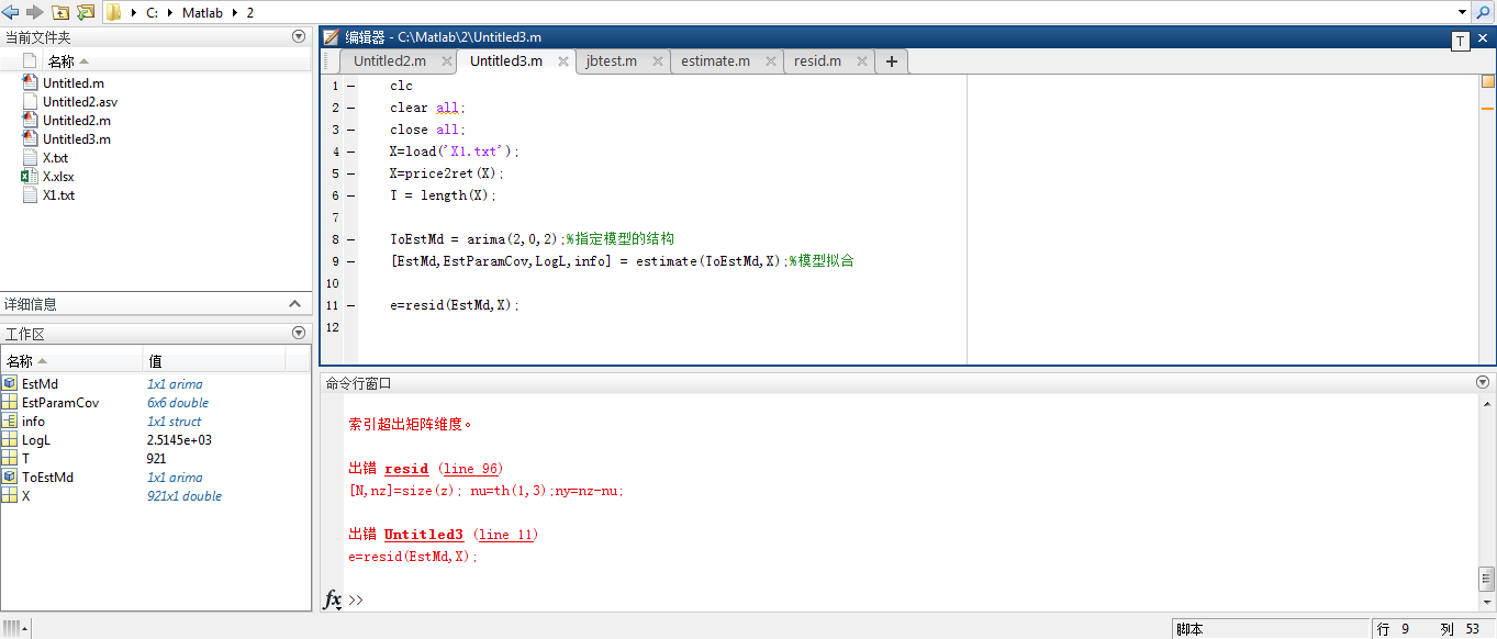 ToEs***** = arima(2,0,2);%指定模型的结构