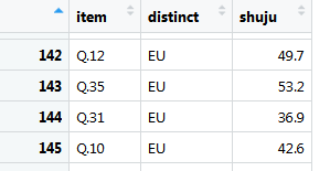 想用ggplot做多重折线图,x轴是item,y轴是shuju,分distinct 的5组数据画5条折线。
