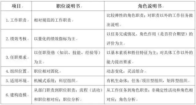 角色说明书是角色管理的基本工具。它和职位说明书在形式上大同小异,在内容上有所差异。下面我们分项进行对比(图2):