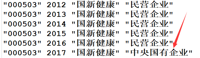2. **统一更改企业性质**:将某个年份之后的所有企业性质更新为最新的类别,例如将所有“公众企业”在特定年份后改为“中央国有企业”。这通常是在你有理由相信新的企业性质更准确地反映了企业的当前状态时使用。