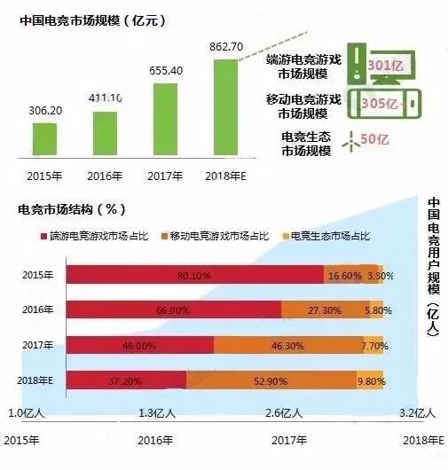 四驾马车拉动电子竞技崛起,2018年市场规模将超800亿