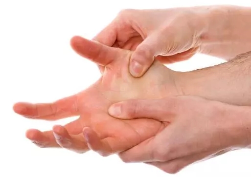两手伸直,掌心相对,平托于胸前,用右手拇指,从左手中指末端,沿手掌中线推移,至肘窝中点,做25次,反复即可。