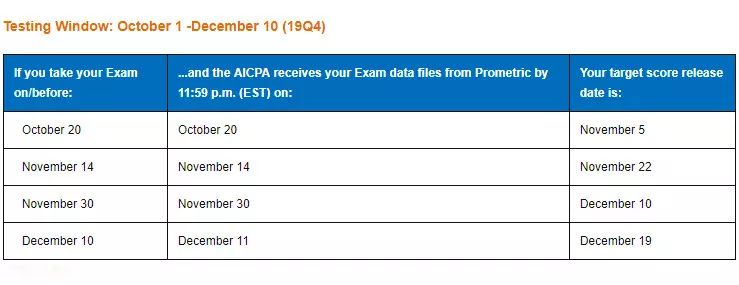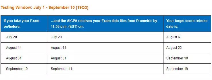 2019年USCPA考试Q3考期成绩公布时间
