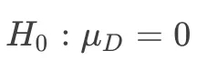 那么自然我们在设定虚无假设就是处理没有作用,那么处理前后的总体均值差异为零,虚无假设是总体的均值为0,也就是: