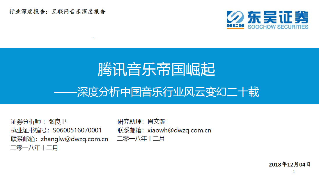 东吴证券深度分析中国音乐行业风云变幻二十载:腾讯音乐帝国崛起20181204