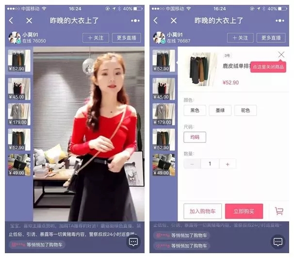 一开始,蘑菇街的直播没有任何限制,和大多数直播平台一样,很多模特和网红主要做的是秀场表演。他们很快发现,因为蘑菇街上的用户多是女生,女生看女生直播几乎是不送礼物的,她们的第一反应往往是,“你的衣服哪儿买的,求链接。”