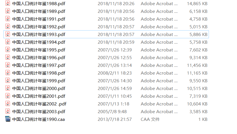 中国人口统计年鉴1990-2003,免费