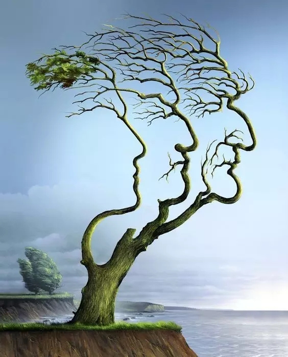 05:看似一个少女靠着一棵树在沉思,但是倒着再看呢?你看到了什么?