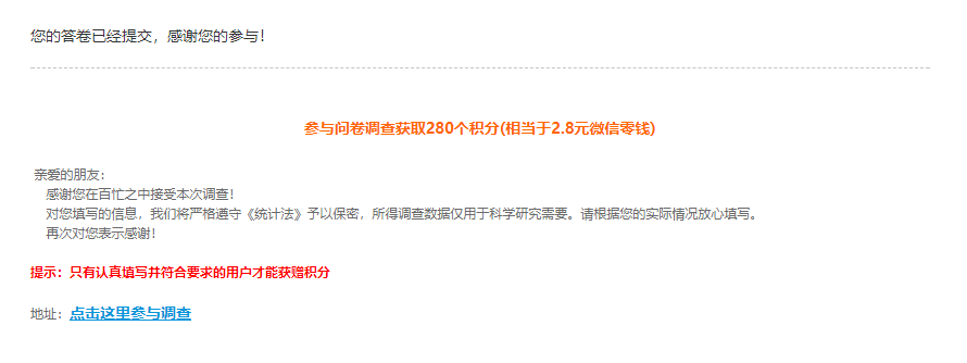 已经填完了!问卷挺不错的!值得参考!