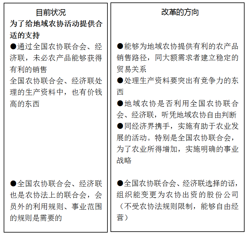 日本联合会等的改革之一(全国农协联合会、经济联)