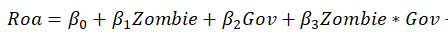 什么意思?贝塔1是显著为负 也就是zombie越大 roa越小,gov和zombie的交互项也是显著为负,那可以说gov增强了zombie对roa影响还是gov减弱了zombie对roa的影响? gov是个负向指标