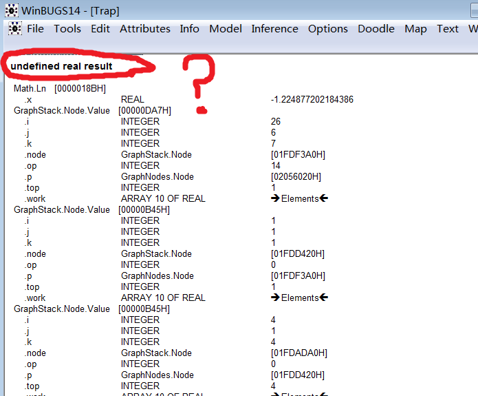 我是菜鸟,在winbugs14中写了一点内容(见附件),模型检查等都正确,但就是运行不了结果,等运算时会出现如下图结果。
