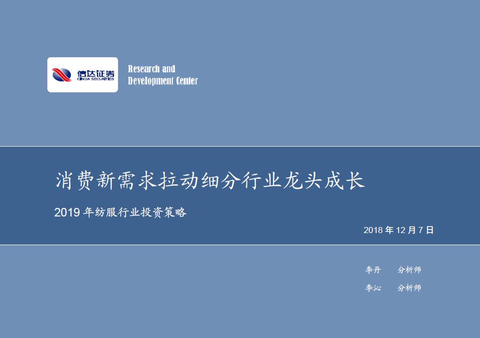 信达证券2019年纺服行业投资策略:消费新需求拉动细分行业龙头成长20181207
