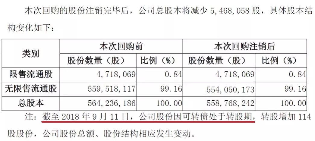 上图中期初期末股本数相减比回购股份数多那么一点点,是因为该公司可转债进入转股期所致。