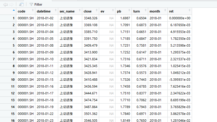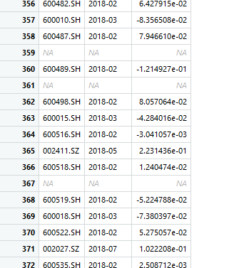 这个是代码,对code和month分别循环。。。不知道为什么结果就不对了前300行还勉强是一个循环,但是却是先按月份循环的,300行之后直接错乱了,到底是哪里错了呢