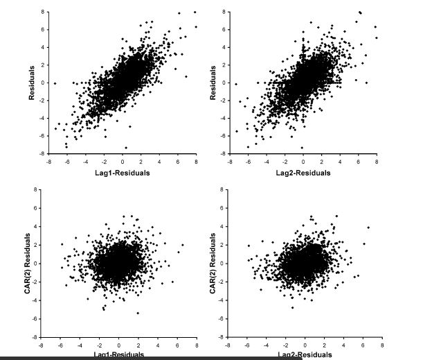 大家好,向大家请教一下如何使用R或者SAS消除非线性模型中非等距的2阶后滞CAR(2)。我的模型形式如下图所示