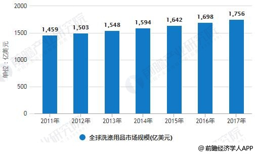 2011-2017年全球洗涤用品市场规模统计情况
