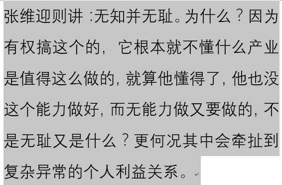 hhj 发表于 2018-12-12 10:41 张维迎则讲:无知并无耻。为什么?因为有权搞这个的,它根本就不懂什么产业是值得这么做的,就算他懂得了 ...