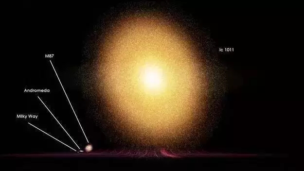 (左到右)银河系、仙女座星系 、室女A星系、IC-1011星系。
