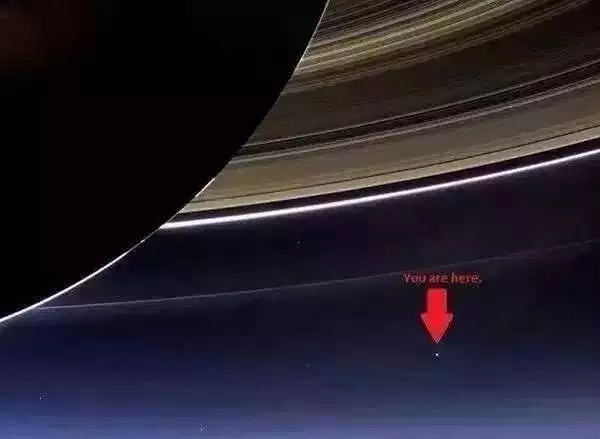 ▼仰望天空,我们都觉得其他的星星很小,但若从土星的环后方来看的话,地球也相当渺小。