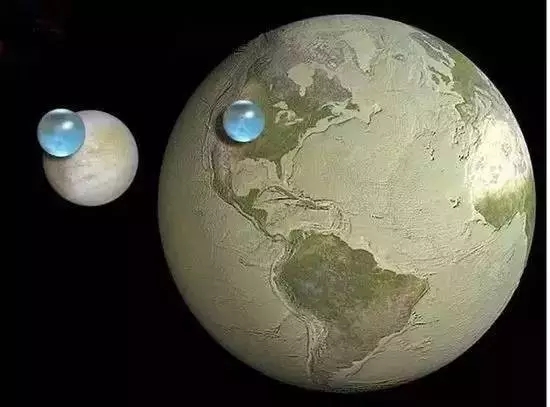 ▼左是木星卫星“木卫二”上头的水量,右则是地球上的水量。
