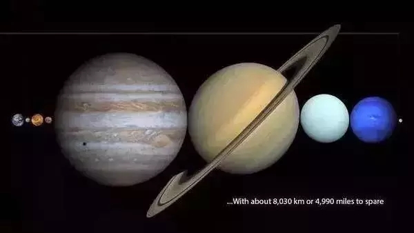 ▼地球到月球的距离貌似很短,但是已经可以塞下太阳系的所有星球了。