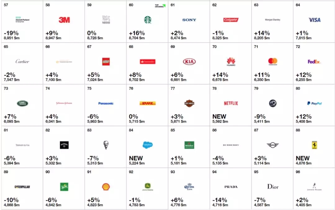 在业务增长率、全球研发排行榜上,华为都名列前茅。同时,根据国际品牌集团(Interbrand)2017年发布的全球最佳品牌榜,华为名列全球第七十位,是继Facebook和Adobe之后,ICT企业中增值最快的品牌。国际品牌集团在排名时考虑的不仅是公司的财务业绩,还有消费者评价,以及公司保障收入的能力。