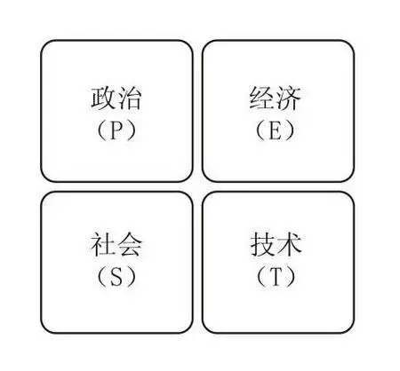 从政治(Politics)、经济(Economics)、社会(Society)、技术(Technology)4个视角分析构成企业组织的外部环境。