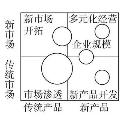 一种通过新旧市场组合和产品组合分析企业经营战略的模式。分为市场渗透战略、新产品开发战略、新市场开拓战略、多元化战略4个选项。