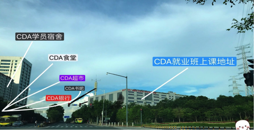 广州CDA校区对面即CDA学员宿舍,CDA食堂、CDA超市、CDA书吧及银行,一体化基础建设服务,让你学习之余的生活需求得到满足。