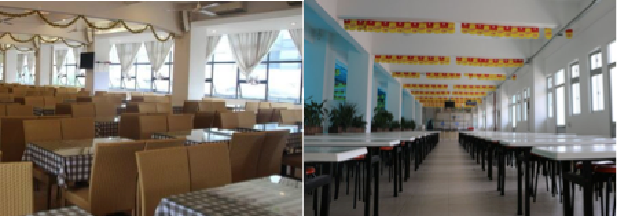 对面配备两个食堂,干净卫生,粥粉面饭一应俱全,二荤一素配例汤10元左右即可饱腹,另有聚会厅,可以根据需求点餐。此外,校区配有微波炉,方便您自己带餐。