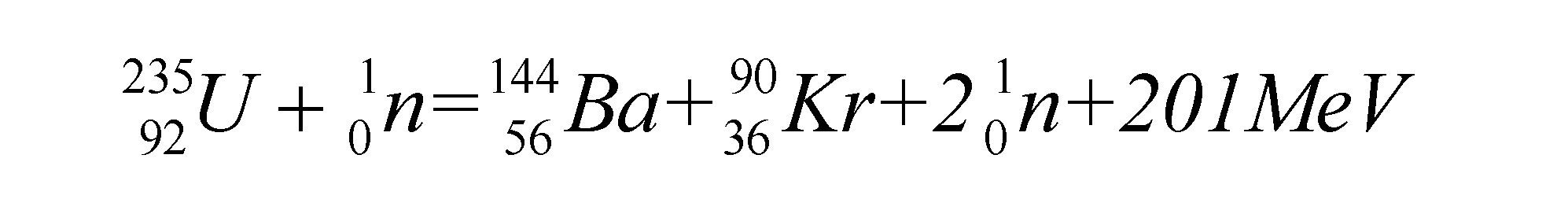 一个中子轰击了一个铀核,产生了Kr,Ba(也可能产生其他类似物质),2个中子以及201MeV的能量。