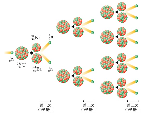 铀核链式反应的必要条件是裂变产生的中子数大于入射中子数,这叫做中子数增殖。如果中子数太少,就不足以维持链式反应。通过增加中子数量可以加强链式反应(如图3所示)。