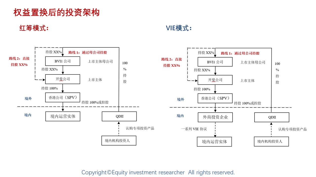 如境内机构投资者有境外关联投资主体,则可采取以下方式进行权益置换: