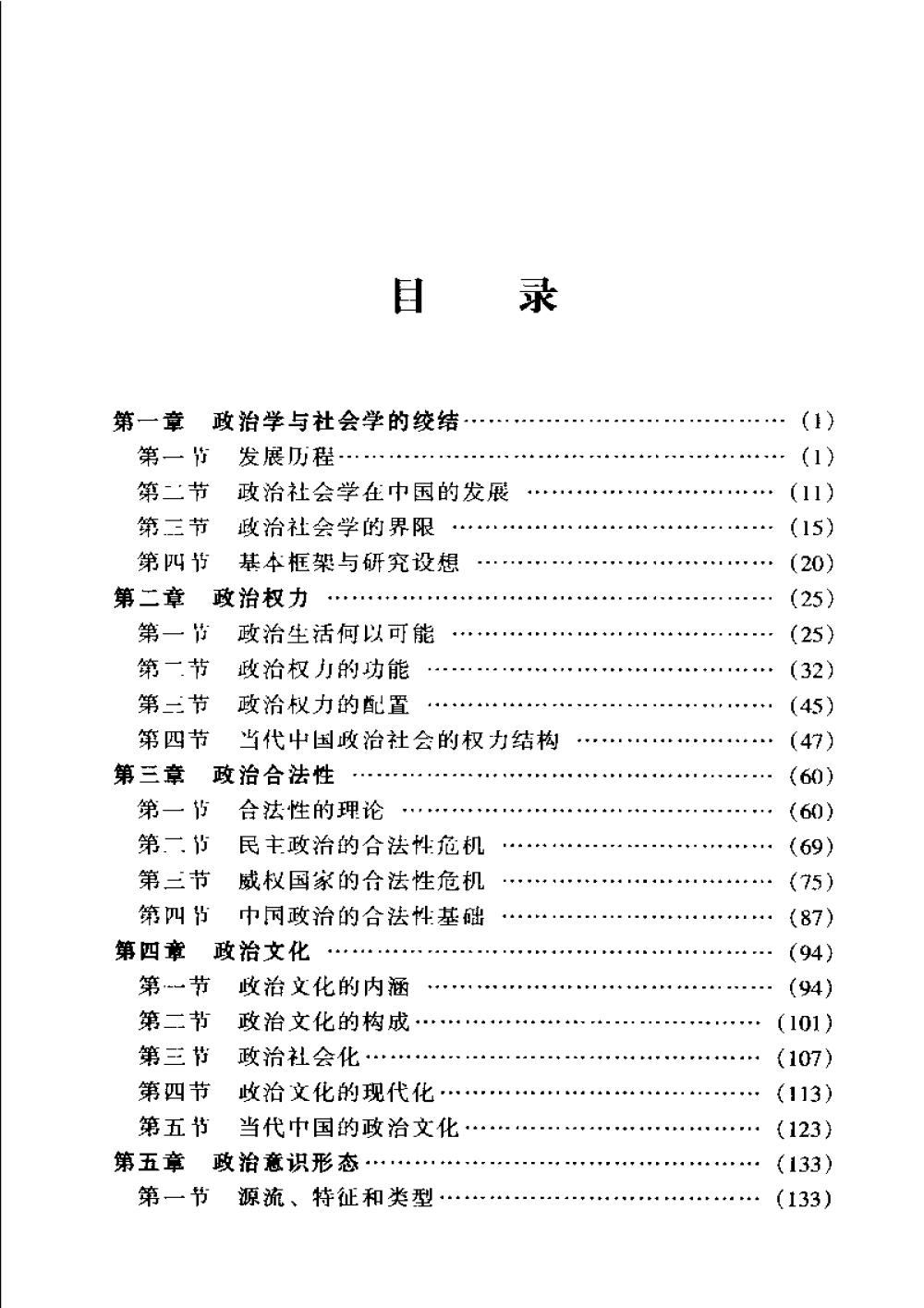本书包括政治权力、政治合法性、政治文化、政治意识形态、政治制度、政治组织、社会分层和政治分层、政治社会的现代挑战等十章内容。