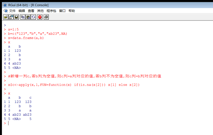 有一个data.frame,a,b列,如何在data.frame 中新增一列,判断条件为b列为空,则选择对应a列,若不为空,则选择对应b列。