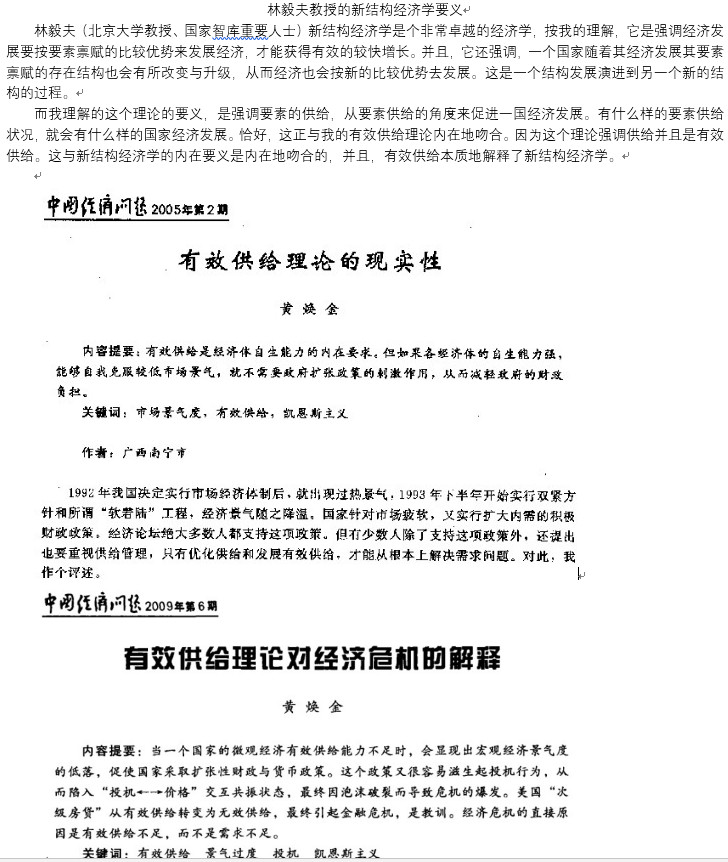 而我理解的这个理论的要义,是强调要素的供给,从要素供给的角度来促进一国经济发展。有什么样的要素供给状况,就会有什么样的国家经济发展。恰好,这正与我的有效供给理论内在地吻合。因为这个理论强调供给并且是有效供给。这与新结构经济学的内在要义是内在地吻合的,并且,有效供给本质地解释了新结构经济学。