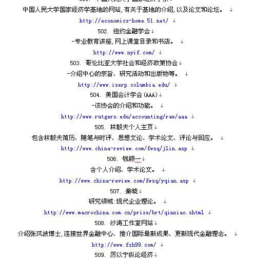 非常经典的经济资源,六个文件,每个部分是100个网站的网址,总共600个中英文网站资源,很是实用,有的很难找到.