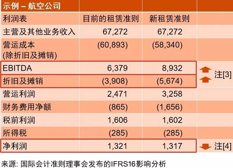 注[4] – 由于“前大后小”模式,净利润在租赁开始的最初几年相比现行会计模式将会下降。