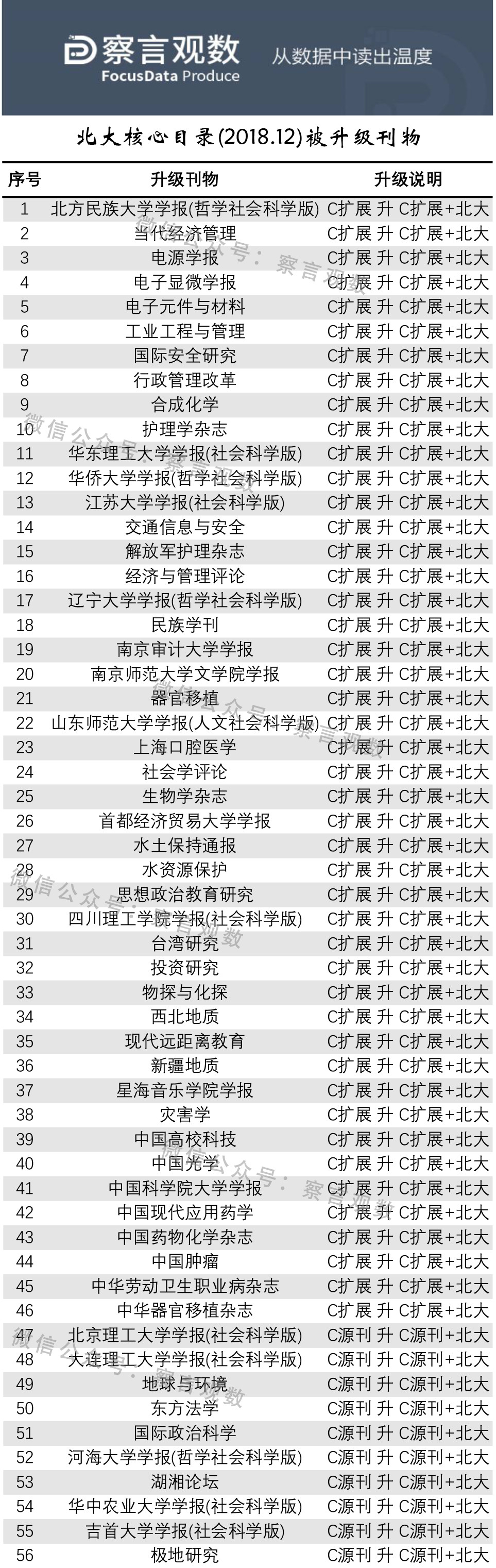 最新版北大核心目录(2018.12),统计被淘汰和被升级期刊如下所示:
