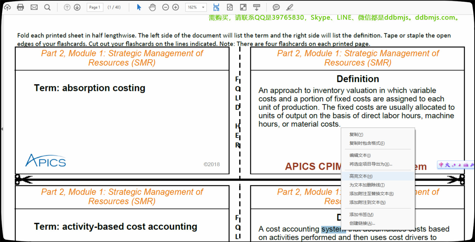 2019 APICS CPIM Learning System V6.1 在线学习系统的资料列表(全网独家提供),每部分都包括: