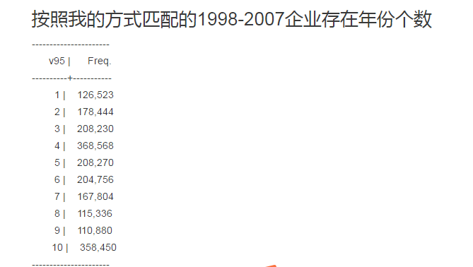 同学们在购买数据库后,可以通过比对1999-2007年间连续存在九年的企业个数,来初步判断自己购买的数据质量怎么样(聂辉华:全部工业企业中有46000个左右),这样一比较,大致可知道自己购买的数据靠谱不。